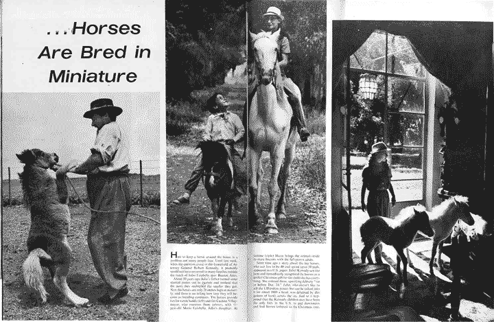 IT IS TRUELY INTRIGUING TO FLIP THROUGH THE PAGES OF THIS POPULAR MAGAZINE HAPPENING UPON AN ARTICLE WITH AN INTERVIEW WITH THE ACTUAL FALABELLA FAMILY IN ARGENTINA!!! WOW!! IT IS NOT COMPLETELY ACCURATE BUT SO WHAT!! THE MAGAZINE IS DATED JANUARY, 1963, OVER 40 YEARS OLD. IT IS PROOF ONCE AGAIN THAT THE FALABELLA IS A TRUE ONE OF A KIND HORSE THAT WILL CONTINUE TO GAIN POPULARITY AND RESPECT.