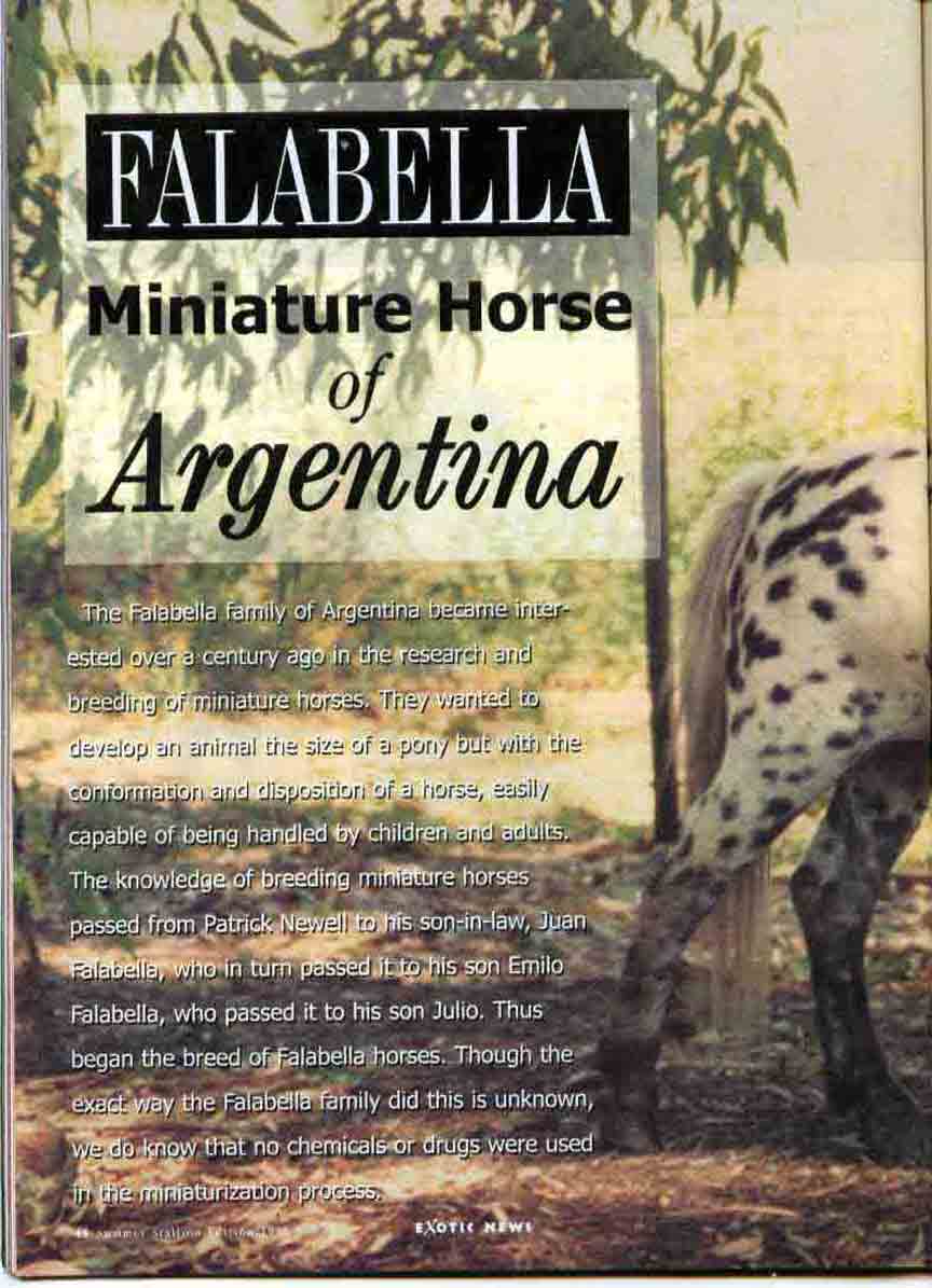EXOTIC NEWS PUBLICATION - SUMMER 1998 EDITION, FEATURING AN IMPRESSIVE STORY ON THE FALABELLA